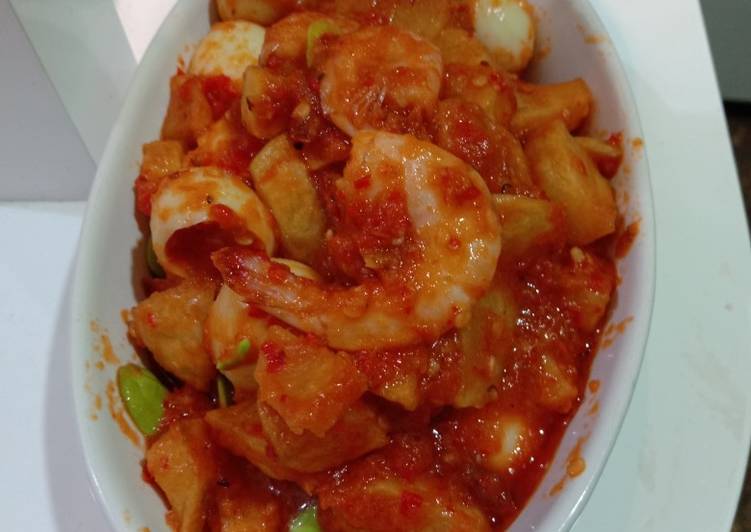- Masukkan kentang,pete,dan telur puyuh,aduk rata..